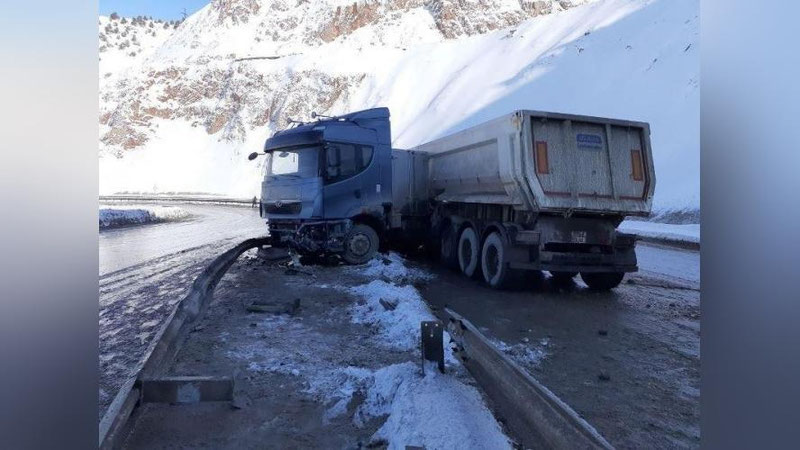 На 233,7 км автодороги «Ташкент – Ош» грузовой автомобиль марки «САМС» врезался в железное ограждение, в результате чего проезжая часть оказалась заблокированной.