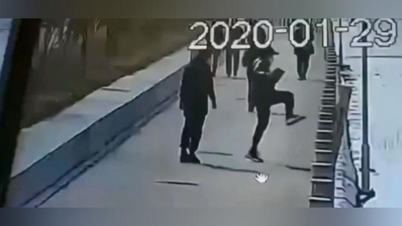 Молодой человек в городе Линьфэнь китайской провинции Шаньси умудрился одним ударом ноги оставить целую набережную без ограды.