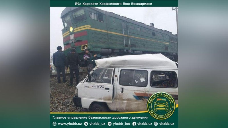 В Кумкурганском районе Сурхандарьинской области произошло столкновение поезда и автомобиля "Дамас".