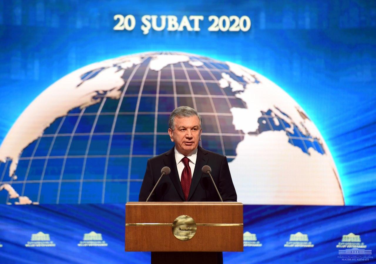 На церемонии Президент Узбекистана выступил с речью.