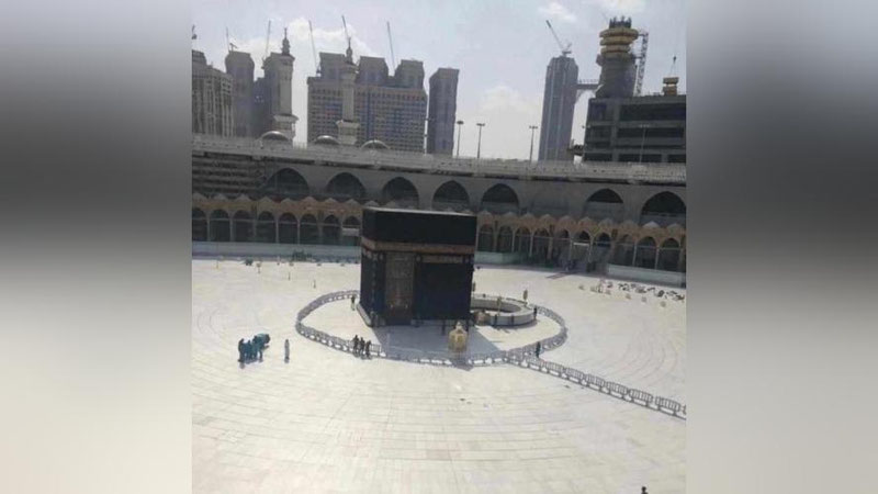 Мечеть аль-Харам, где находится главная святыня мусульман Кааба, закрыта на санобработку. Мечеть откроют за час до начала пятничной молитвы, которая будет разрешена только внутри мечети.