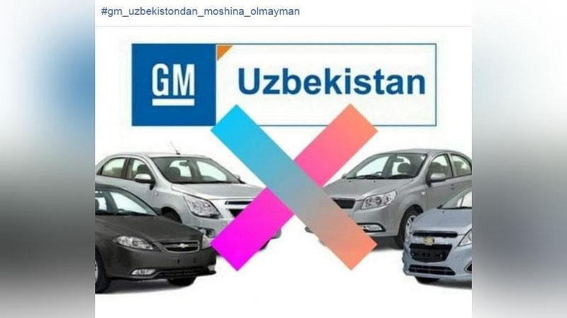 Новый хештег #GM_Uzbekistondan_moshina_olmayman (#не_буду_покупать_машину_у_GM) набирает все большую популярность в Сети.