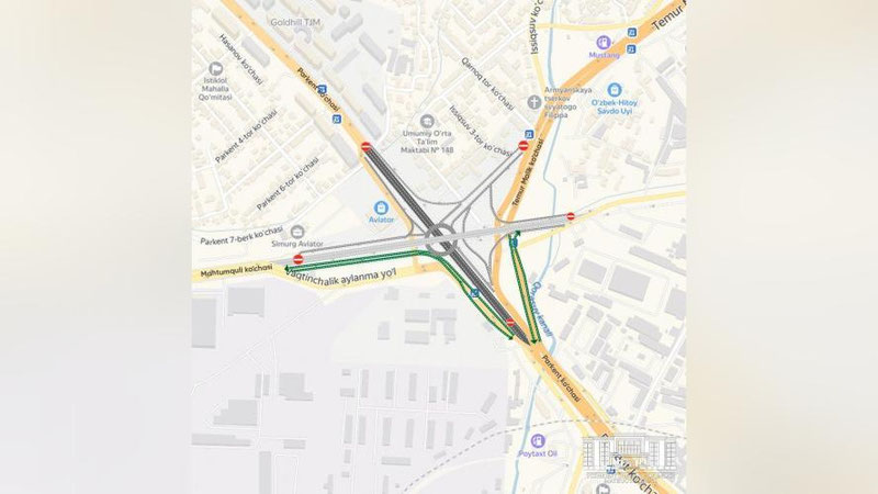 12 марта 2020 года в 8:00 открыт съезд с улицы Паркентской на улицу Махтумкули по направлению к пересечению проспекта Мирзо Улугбека с улицей Махтумкули.