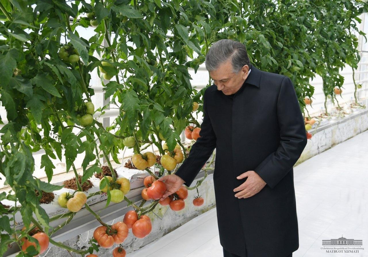 Ранее Президент Шавкат Мирзиёев осмотрел современную теплицу общества с ограниченной ответственностью “Global Food Impeks” Янгиарыкского района.