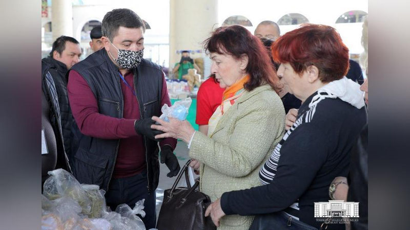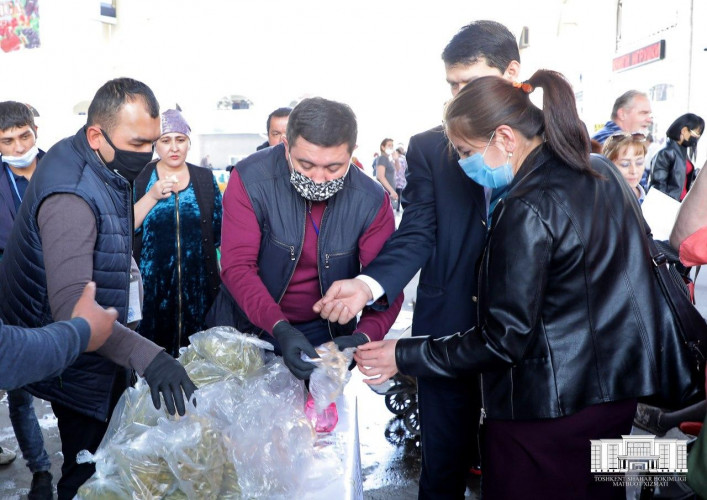 На рынках Ташкента сегодня бесплатно раздавали медицинские маски, стерильные перчатки и другие средства гигиены всем гражданам, которые пришли без средств защиты.