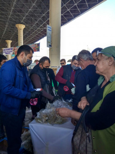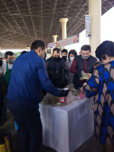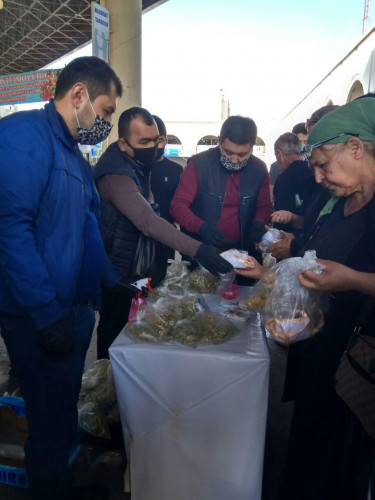 Так, акция по раздаче масок и исрыка прошла на Мирабадском (Госпитальном) рынке.