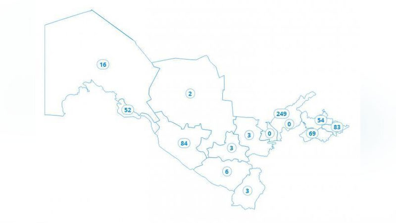 Согласно официальному сайту о коронавирусе в Узбекистане, по регионам на утро 10 апреля расклад пациентов с COVID-19 таков: