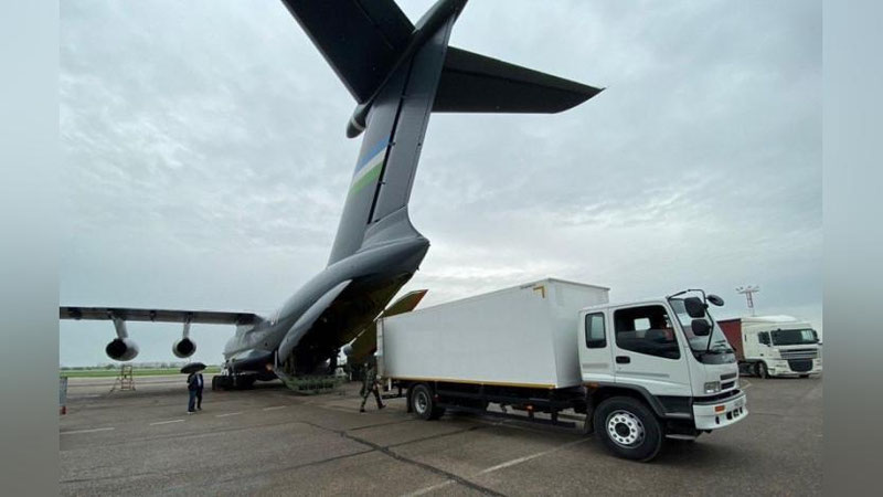 В состав груза, который был сформирован Министерством по чрезвычайным ситуациям Узбекистана, вошли медицинские маски и перчатки, защитные комбинезоны, антисептики и другие предметы медицинского назначения, необходимые для борьбы с коронавирусом.