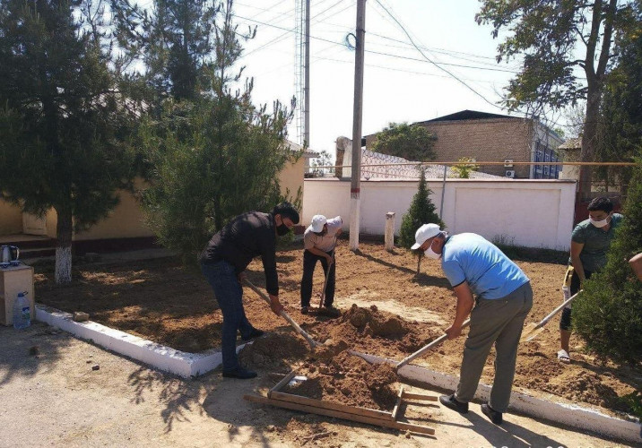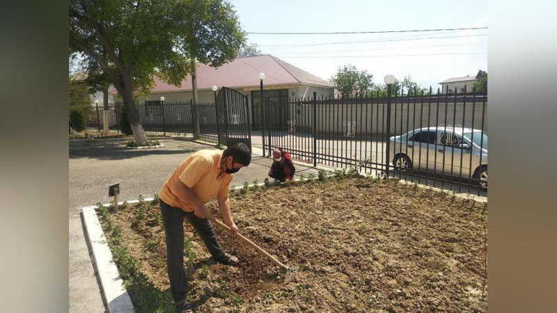 На земельном участке вокруг здания детской школы музыки и искусств №20 города Бекабад начались работы по посадке бахчевых и овощных культур.