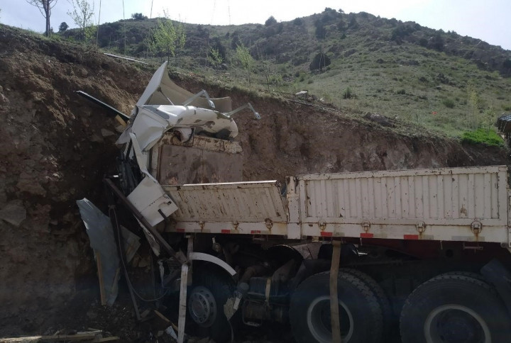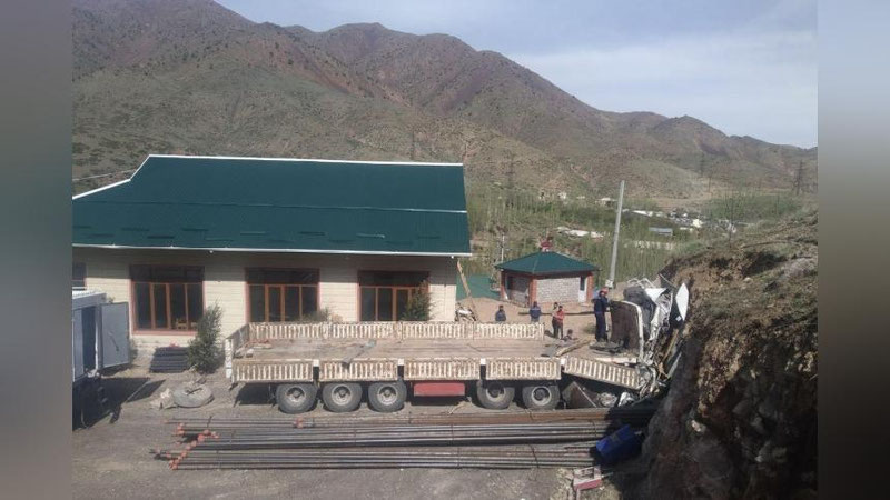 Во время движения у 37-летнего водителя седельного тягача “Shacman SX4254” возникли неполадки в тормозной системе, он съехал с правой стороны обочины в сторону кафе “Тоғ Шабодаси”, проехал 180 метров и на полном ходу врезался кабиной в крутой склон.