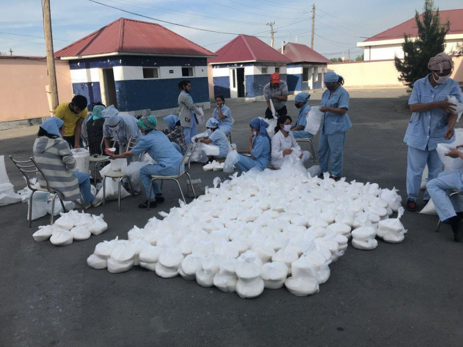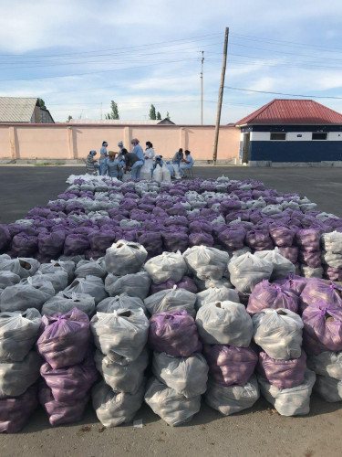 Каждой семье, оказавшейся в трудных жизненных условиях, поставлено по мешку муки, 10 килограммов картошки, пять килограммов моркови, 0,5 килограмма лука, килограмм мяса, два килограмма сахара, пять килограммов риса и пять литров растительного масла. До сегодняшнего дня 800 семьям передано продовольственных продуктов на 253 миллиона сумов.