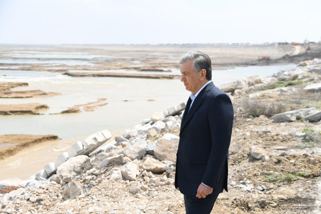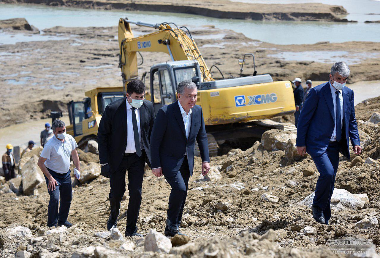 Президент Шавкат Мирзиёев сегодня посетил Сардобинское водохранилище и пронаблюдал за работами по восстановлению дамбы. Всесторонне обсудив ситуацию со специалистами, дал указания по качественному укреплению сооружения.