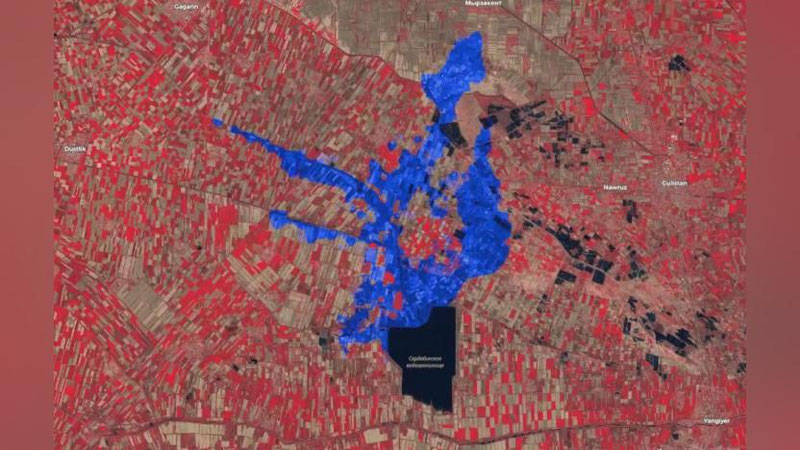 На фото - данные со спутника, иллюстрирующие масштаб бедствия.