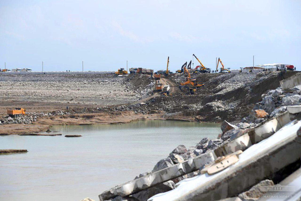 Следует отметить, что данное гидросооружение было построено для подачи воды на посевные площади 6 районов Сырдарьинской и Джизакской областей. В настоящее время на месте паводка сформированы 2 бригады, на левом и правом берегах прорванной дамбы ведутся интенсивные работы. В этом процессе задействованы сотни квалифицированных специалистов и более тысячи единиц спецтехники. Доставлены большие валуны, бетонные блоки и плиты, а также другие строительные материалы, а перед дамбой возводится полукруглая барьерная стена. Для рабочих, инженеров и водителей созданы все условия, трудятся они круглосуточно.