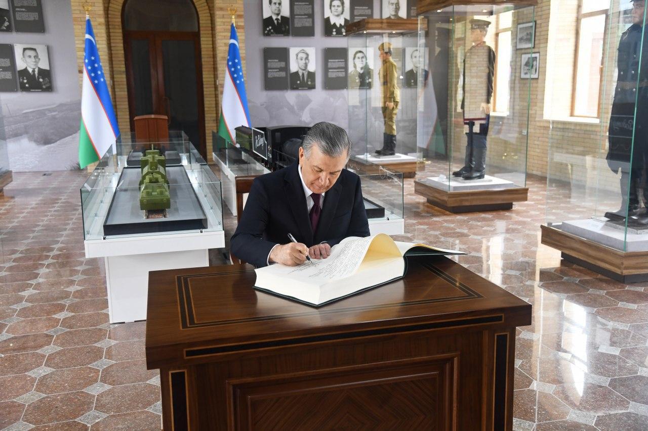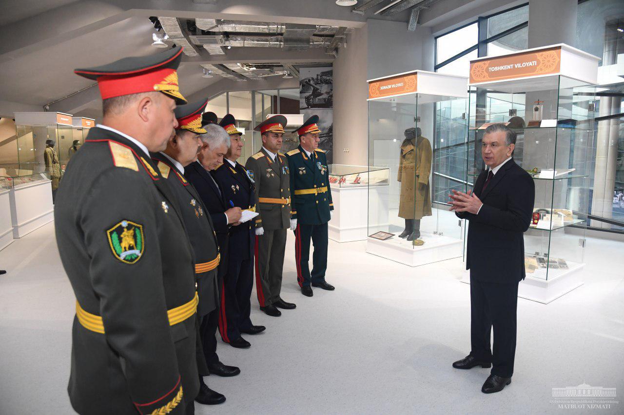 Шавкат Мирзиёев подчеркнул необходимость создания каждым командованием своих отдельных разделов в Музее славы, проведения научных исследований и пополнения их экспозиций. Дал рекомендации по формированию высоких моральных качеств, чувства отваги у военнослужащих и курсантов, молодежи путем организации для них экскурсий в музей.