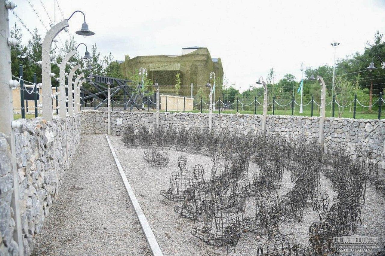 Глава государства также осмотрел комплекс «Слеза» в парке. Эта художественная композиция в форме глаза изображает ужасы войны, единство всех людей независимо от национальности и религии.