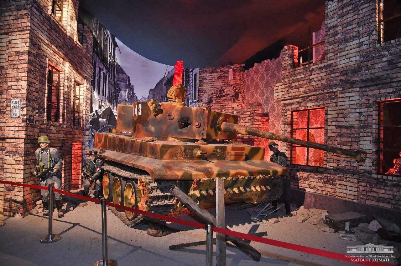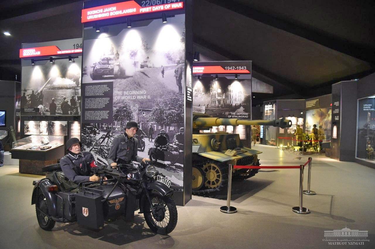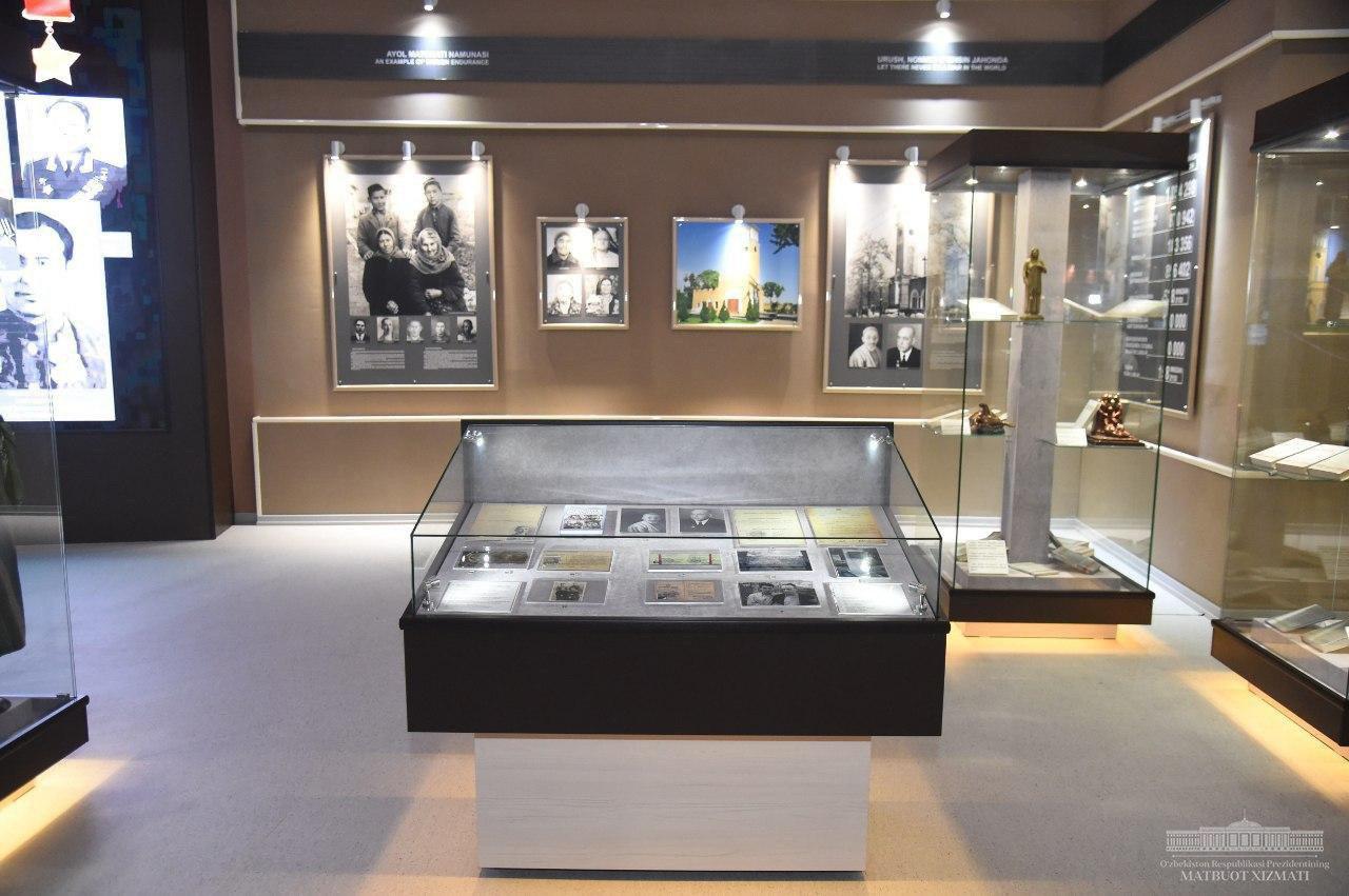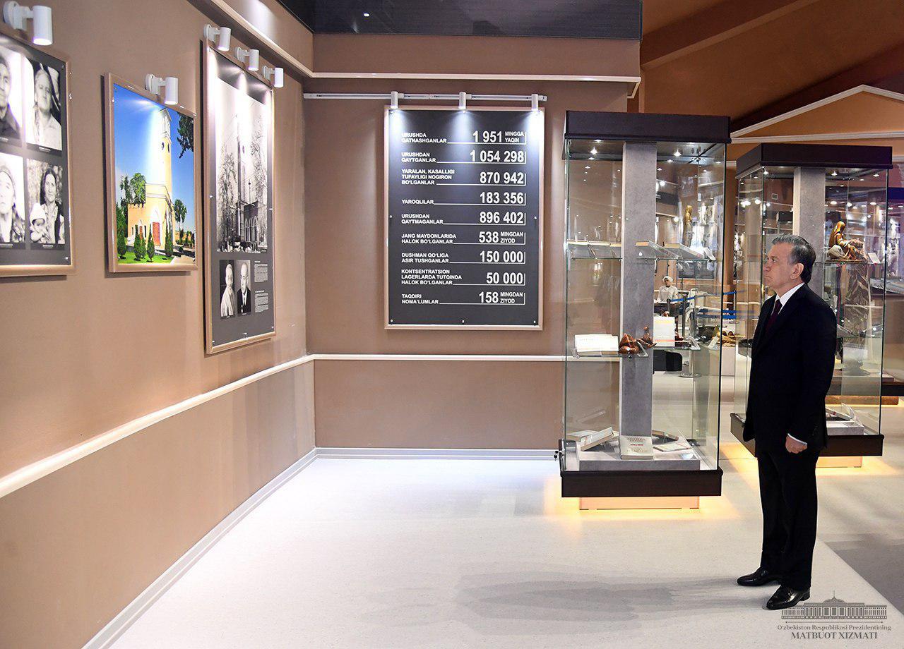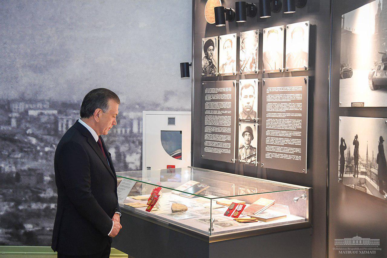 Президент Шавкат Мирзиёев ознакомился с экспозицией музея славы в новом Парке Победы.