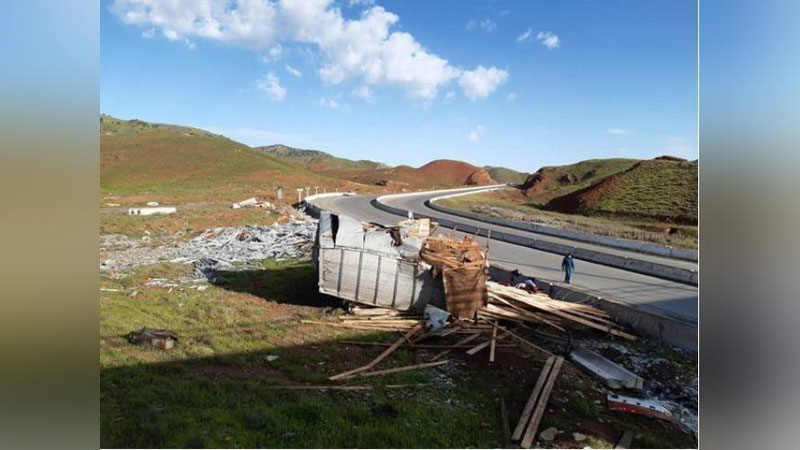 46-летний водитель КАМАЗа потерял управление и врезался в бетонный бордюр на правой стороне дороги.