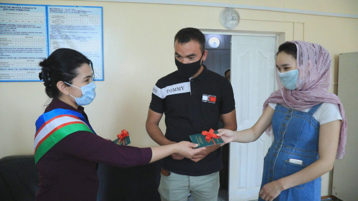 Сотрудники районного ЗАГСа Ферганского областного управления Агентства госуслуг передали свидетельства о рождении семье Абдурахмановых, сообщает "Халк сузи".