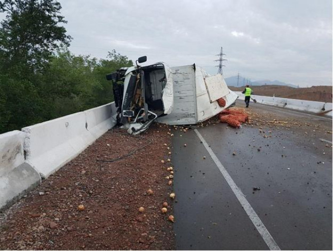 Примерно в 4:30 36-летний водитель грузовика Isuzu, перевозящего лук, двигался на трассе на 271-м км трассы Ташкент-Ош A-373. На склоне он потерял управление и врезался в бетонный бордюр на обочине, в результате чего опрокинулся.