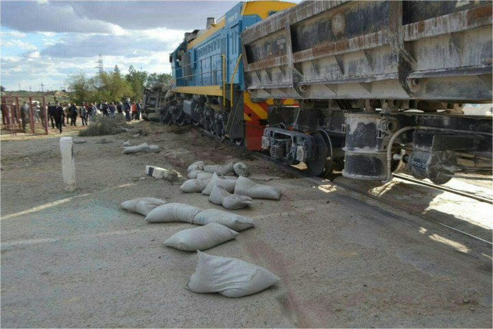 Тепловоз и грузовик MAN столкнулись в Навоийской области 18 мая, примерно в 16:50.