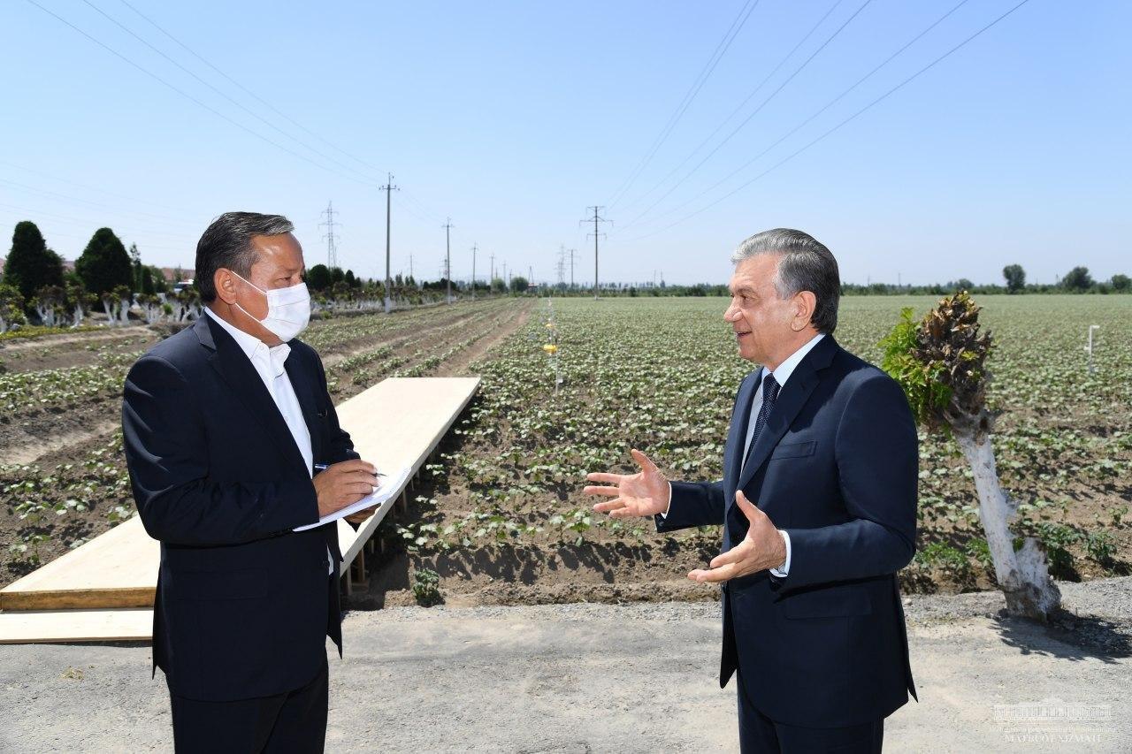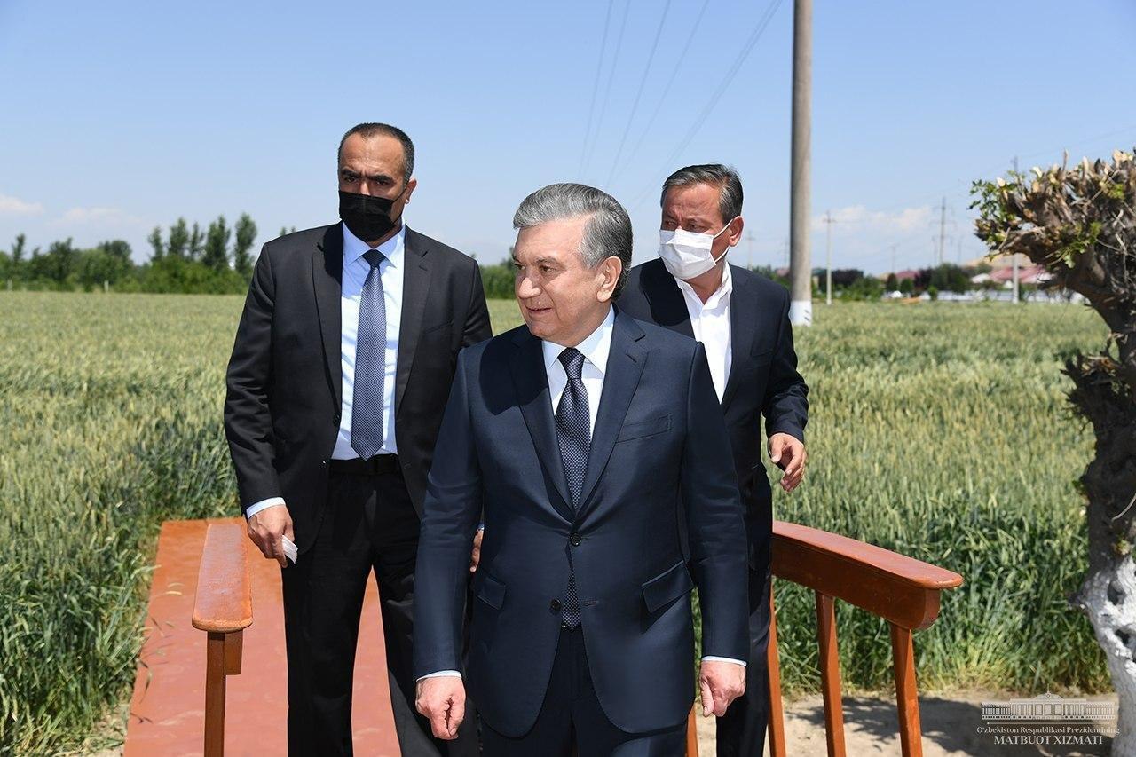 Глава государства посетил фермерское хозяйство «Кухна водий бахори» в Алтынкульском районе, где ознакомился с состоянием развития пшеницы и хлопчатника.