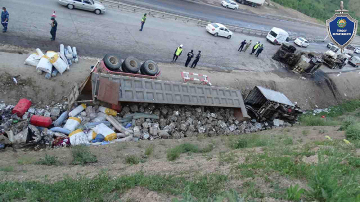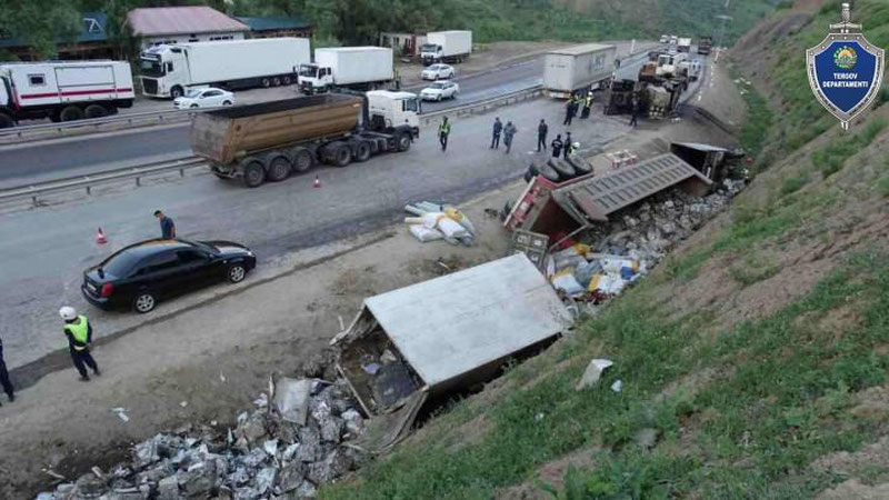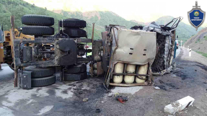 Примерно в 05:00 часов, водитель грузового автомобиля марки “Самс” 63-летний А.Р., управляя автомобилем по 227 километру автомобильной дороги “Ташкент-Ош”, не сумев обеспечить безопасность движения в результате отказа тормозной системы, столкнулся с двумя грузовыми автомобилями “Isuzu”, стоявшими по краю дороги по тому же направлению. После столкновения кабина грузового автомобиля “Самс” возгорелась.