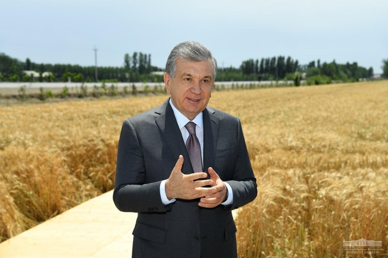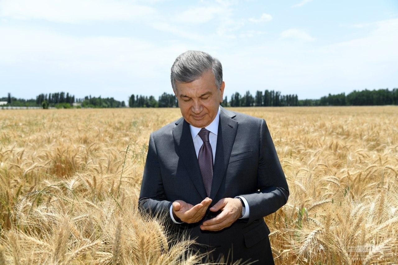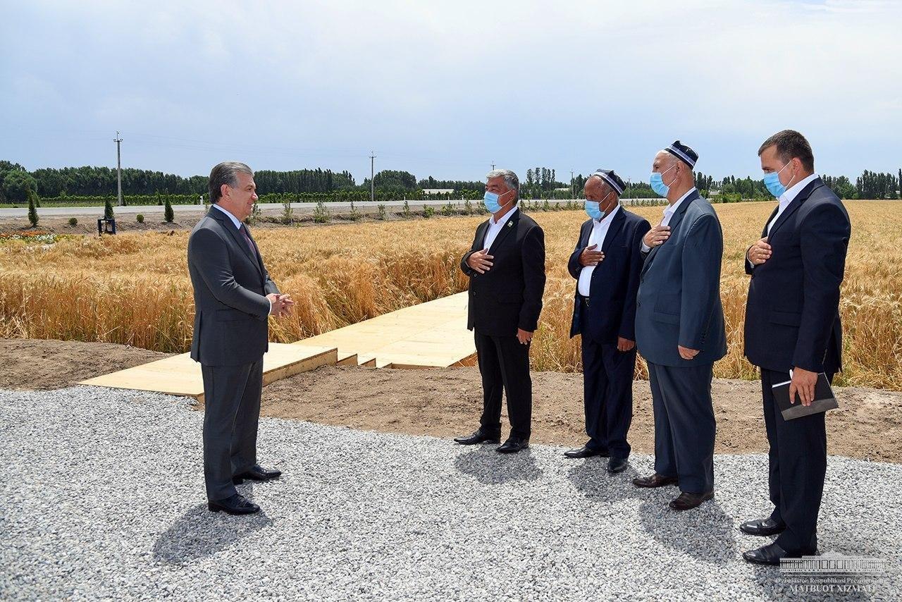 Сперва кортеж главы государства остановился у поля фермерского хозяйства "Турсунов Юсуфжон ери" в Куштепинском районе. Хозяйство выращивает зерно на 50 гектарах и хлопчатник на 30 гектарах. Президент ознакомился с развитием пшеницы. Ее намечено собрать по 82 центнера с гектара.