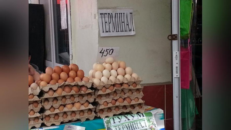 Чтобы ознакомиться с ситуацией в Сергелийском районе, мы побывали на указанной в письме Сергелийской ярмарке и принялись опрашивать продавцов мясных и куриных ларьков на предмет наличия терминала. Только двое из десяти выразили готовность обслужить нас по безналичному расчету, остальные сослались на отсутствие терминала. То же самое мы наблюдали, опрашивая продавцов в точках продажи молочной продукции. На прилавках же, где реализуют фрукты и овощи, говорить о терминале даже не приходится.