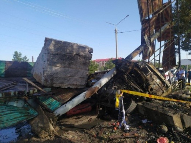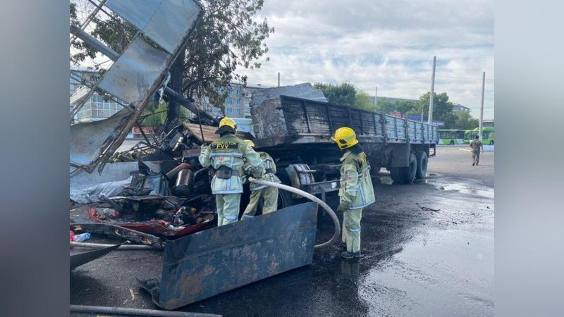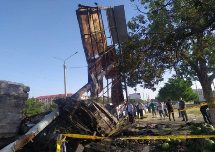 Рядом с кафе «Дилшод» водитель грузового автомобиля «КамАЗ» 38-летний Мунис И. совершил столкновение с установленным на обочине дороги рекламным щитом. В результате ДТП в салоне автомобиля произошло возгорание. Водитель от полученных травм скончался на месте, сообщает пресс-служба ГУВД.