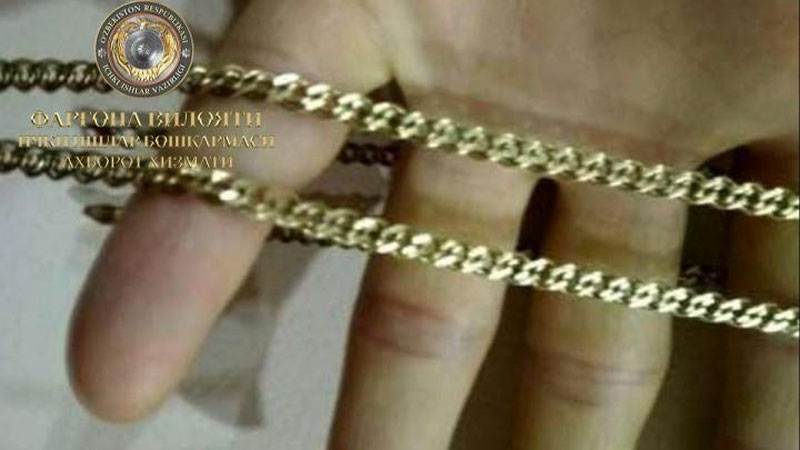 4 июня в УВД Ферганы с заявлением обратился гражданин Ш.Т., в котором указал, что 19 мая неизвестный показал женскую цепь золотистого цвета и сказал, что она сделана из золота. Данную цепь неизвестный продал гражданину Ш.Т. за 3 000 000 сумов. Как оказалось, купленная цепь была сделана из меди.