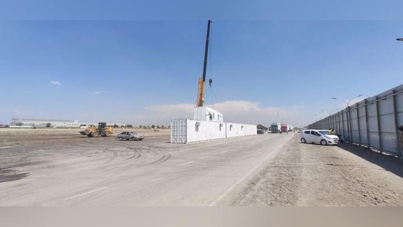 На фото: В Зангиату завозят новые контейнеры для "карантинных" - прим.ред.