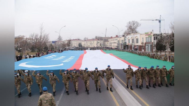 Таъкидланишича, Фарғона шаҳар ҳаво десантчиларидан иборат 120 кишилик таркиб 10 километр масофа бўйлаб 1100 кв.м. бўлган байроқни олиб ўтишди.