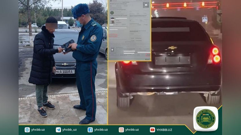 Ижтимоий тармоқда Бухоро вилояти, Бухоро шаҳрининг марказий кўчаларида давлат рақам белгиси бўлмаган "Lacetti" русумли автомобиль ҳаракатланиб юрганлиги акс этган видео тарқалди.