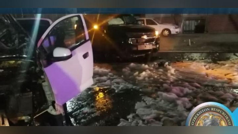 Оқибатда, “Spark” автомобилининг олд қисмида ёнғин келиб чиққан.