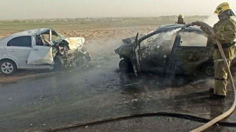Ангор-Жарқўрғон йўналиши бўйлаб ҳаракатланаётган "Nexia 3" ҳайдовчиси бошқарувни йўқотиб, қарама-қарши йўналишда келаётган яна бир "Nexia 3" билан тўқнашади. Натижада машиналар бирида ёнғин юзага келган. Йўловчилардан 23 ёшли эркак, шу ёшдаги аёл ҳамда ҳайдовчи оғир тан жароҳати олиб шу жойнинг ўзида вафот этган.