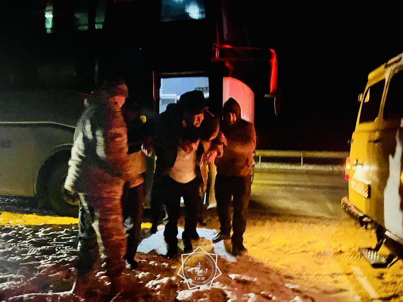 Қутқарувчилар автобус йўловчиларини, жумладан, 2 болани Шакпак қишлоғидаги исиниш пунктига олиб боришган.
