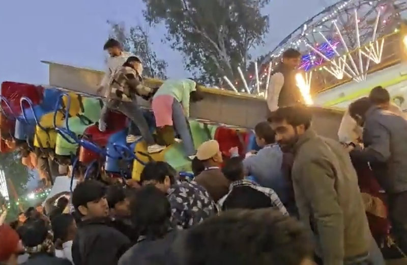 Ҳиндистон шимолидаги Фаридобод шаҳридаги Суражкунд ярмаркасида аттракционнинг қулаши акс этган видео интернетда пайдо бўлди.