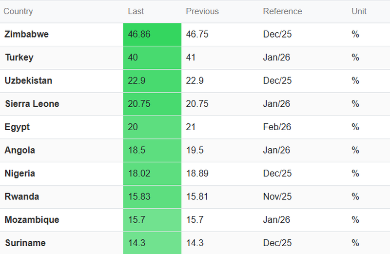 Бу кўрсаткич бўйича мамлакат фақат Туркия ва Зимбабведан кейинги ўринни эгаллаган.