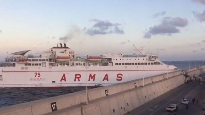 Лас-Пальмас бандаргоҳидан йўлга чиққан паромда бирдан электр чироқлари ўчиб қолиши натижасида двигатель ишламай қолди. Оқибатда сув оқими паромни пристанга олиб келиб урди. Паром бортида 140 нафар одам бўлган. Тўқнашув оқибатида уларнинг баъзилари енгил тан жароҳати олди. Ҳодиса туфайли паром ҳам, пристан ҳам жиддий шикастланди. Воқеа жойида полиция ва фавқулодда хизмат ходимлари иш олиб бормоқда.
