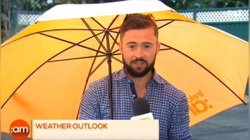 Ирландиянинг TV3 телеканалида об-ҳаво маълумотини ўқиётган бошловчи Дерик Хартиганни жонли эфир пайтида шамол учириб юборди. Катта соябон остида турган бошловчи телетомошабинларга об-ҳаво маълумотини ўқиб бераётган эди. Бир муддатдан сўнг кучли шамол оқими уни четга улоқтириб юборди. Орадан саноқли дақиқалар ўтгач, Дерик яна кадрда пайдо бўлди. Унинг соябони эса синган эди. Мазкур ҳодиса акс этган видеони Хартиганнинг ўзи Youtube`га жойлади.