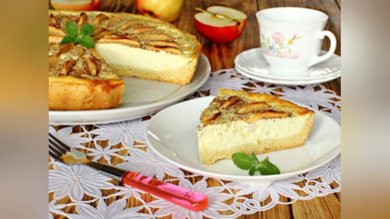 Зарур масаллиқлар: хамирига: 270 гр. ун, 180 гр. сариёғ, 80 гр. шакар, 1 дона тухум, ярим чой қошиқ хамирюмшатгич, туз; ичига солишга: 750 гр. творог, 160 гр. шакар, 25 гр. картошка крахмали, 5-6 та янги олма, 4 дона тухум, долчин.