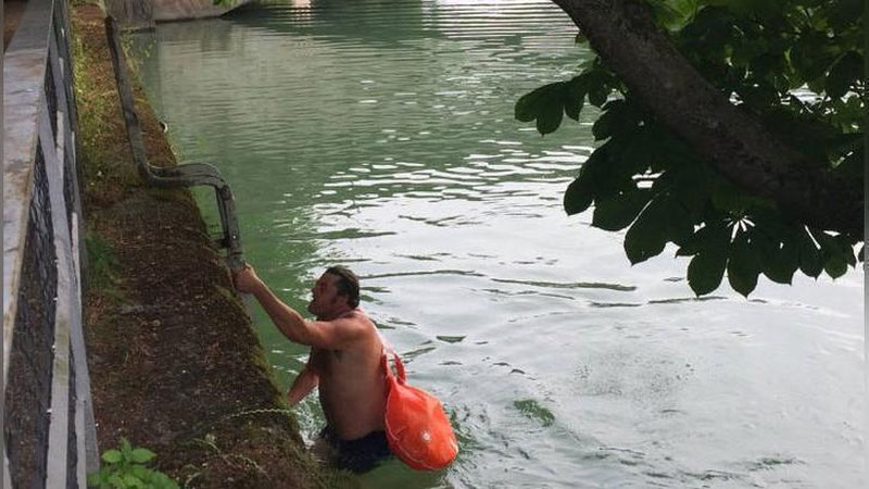 Мана икки йилдирки, у ишга уйининг ёнидан оқиб ўтувчи Изар дарёси орқали сузиб боради. У сувга тушишдан олдин костюми ва ноутбугини сув ўтказмайдиган махсус сумкага солиб олади.