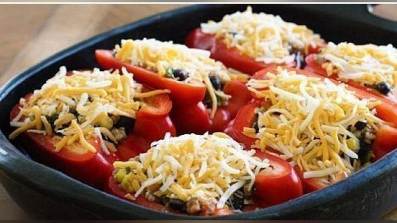 Зарур масаллиқлар: 5-6 та қизил булғор қалампири, 200 гр мол гўшти қиймаси,100 гр маринадланган жўхори, 1 та пиёз, 2 та помидор, ярим боғ кашнич, 100 гр пишлоқ, ярим стакан майонез, 50 гр ўсимлик ёғи,1 дона тухум, туз, мурч.
