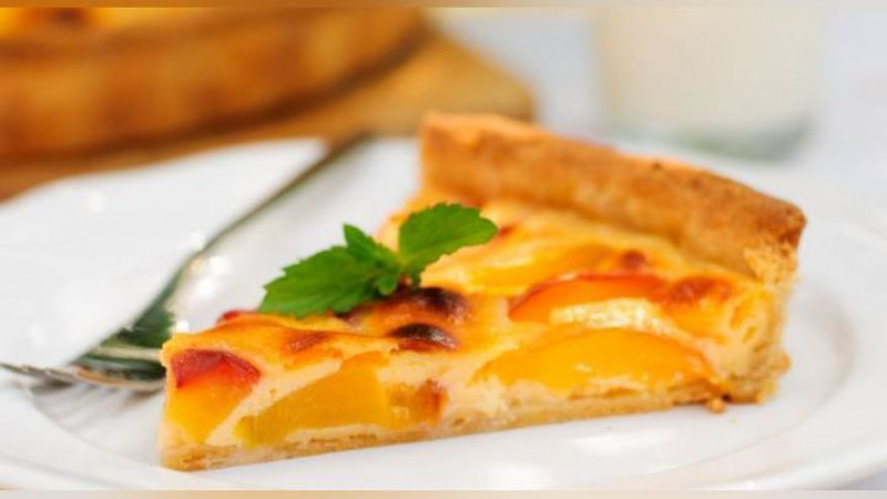 Зарур масаллиқлар: 200 мл. сметана, 1,5 стакан ун, 110 гр. сариёғ, 100 гр. шакар, 3 дона тухум, 5 та шафтоли, 2 ош қошиқ сут, 1 чой қошиқ маккажўхори крахмали, туз, ванилин.