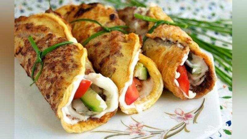 Тайёрланиши: 1. Тухумни кўпиртириб, туз ва кўкатларни қўшинг.