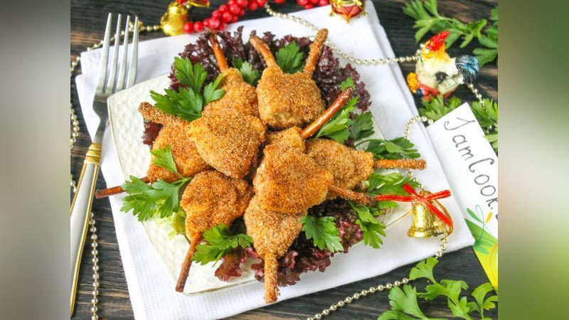 6. Пишириқларни аввал аталанган тухумга ботириб, кейин нон толқонига белаб оласиз. Сўнгра қиздирилган ўсимлик ёғида иккала томонини ҳам қизартириб қовурасиз.