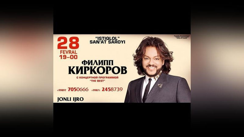 Россия эстрадаси қироли Филипп Киркоров яна Тошкентга келади...