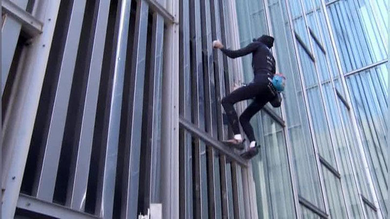 Франциялик 55 ёшли Ален Роберт ҳеч қандай ҳимоя воситаларисиз баландлиги 187 метр бўлган Tour Total осмонўпар биносига чиқди.