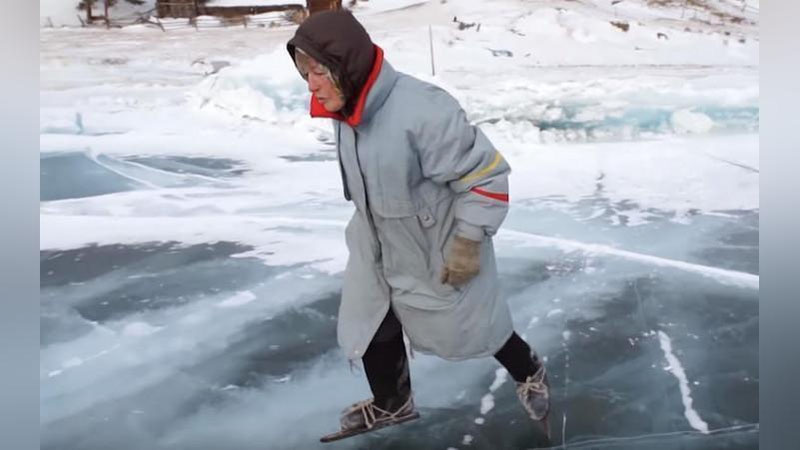Кекса аёл тамаддун томон бориш ва мол-ҳолларини боқиш учун қўлбола конькида музлаган кўл узра 10 километр йўл босади.